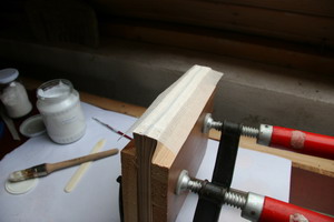 Mit dem Finger wird der Buchbinderleim, der in diesem Arbeitsschritt noch pur verwendet wird, gründlich verrieben. Das Ganze muss mindestens 5 Stunden trocknen.