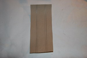 Um die drei Komponenten zu verbinden, benutze ich einen Verbindungsstreifen aus Packpapier, auf dem ich etwa besagte 5 Millimeter (Kartonstärke) Abstand einzeichne, damit sich das Buch später auch zuklappen lässt.