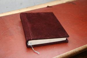 Bei der Gestaltung des Einbands sind der Phantasie grundsätzlich keine Grenzen gesetzt. Ideal sind spezielle Vorsatzpapiere, die es im Buchbinderbedarf zu kaufen gibt, aber auch alle anderen Papiere lassen sich verarbeiten, solang sie nicht so hauchdünn sind, dass sie durch den Leim aufweichen und sich auflösen. Auch viele Stoffe eignen sich sehr gut, besonders Leinen. Für mein Buch habe ich mich zum ersten Mal an Leder heran getraut und war überrascht, wie gut es sich verarbeiten ließ.
