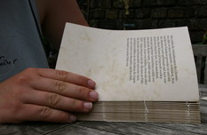 Nun aber genug der Schwärmerei, Ihr wollt ja hier etwas darüber erfahren, wie ein Buch entsteht, nicht wahr? Das letzte Buch, was ich gebunden habe, war ein Geschenk für einen ganz besonderen Freund, mit dem ich viele spannende, lustige und rührende Erinnerungen verbinde, innerhalb und außerhalb unseres Rollenspiels, und dem ich auch einfach so danken wollte dafür, dass er so ist wie er ist.